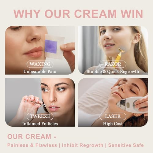 Women Facial Hair Removal Cream for Face Sensitive Skin, Painless Facial Depilatory Cream for Face, Flawless Unwanted Chin Upper Lip Hair Remover, At Home Pubic Hair Removal, 1.69 fl.oz