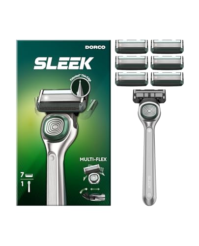 DORCO SLEEK 6 Blade Razor for Men with 7 Cartridges | Men’s Cartridge Razors with Razor Handle and Smooth Shaving Blades | Men’s Razors with Multi-Flex Technology