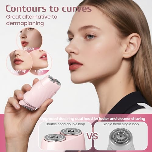 4-in-1 Electric Razor for Women, Bikini Trimmer & Facial Hair Remover, Rechargeable Cordless Dual-Head Shaver, IPX7 Waterproof, Painless & Hypoallergenic for Sensitive Areas, Pink