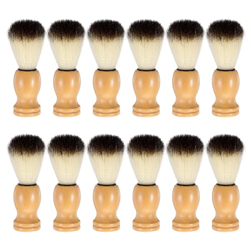 12 Pcs Wood Handled Hair Shaving Brush Professional Salon Tools Beard Grooming Tool for Men Shave Accessory