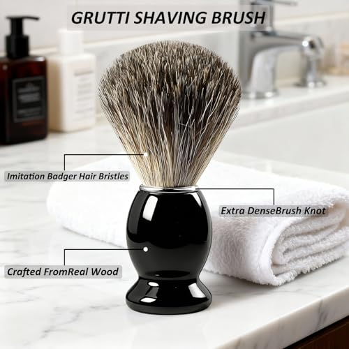 GRUTTI Shaving Brushes Kit For Men, 3 In 1 Shaving Brush Set Includes Shaving Brush, Shaving Bowl, Razor, Shaving Stand