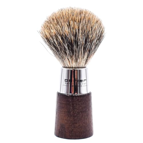 Parker 3-Band Pure Badger Shaving Brush with Stand – Long Loft Bristles for Generating a Rich Lather, Ergonomic Walnut Handle with Chrome Accents, Handmade Wet Shaving Brush | Iconic Brand