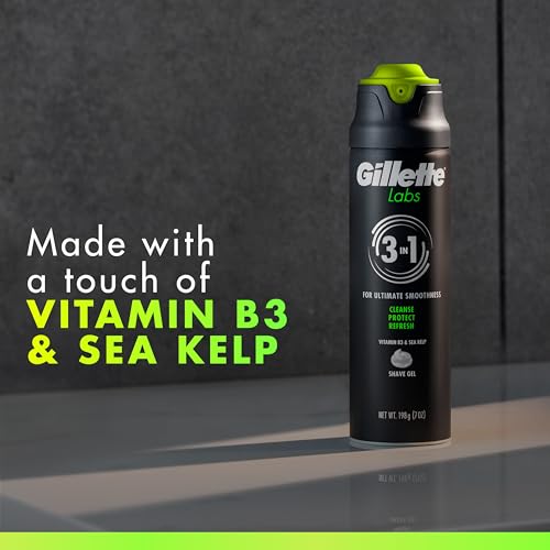 Gillette Labs Rapid Foaming Shaving Gel for Men, Alcohol, Dye and Paraben-Free with Vitamin B3 and Sea Kelp, Cools and Soothes Skin, 7 OZ