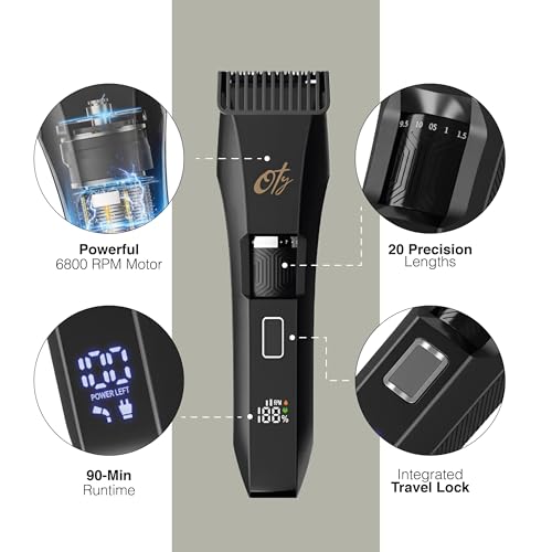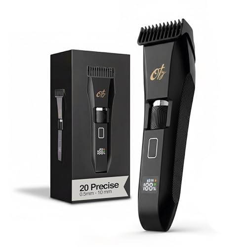 Oty Beard Trimmer for Men Adjustable – Waterproof Cordless Hair Clippers with 20-Length Dial, Stainless Steel Blades, LED Display & Travel Lock – Rechargeable Grooming Kit – Ideal Gift for Men