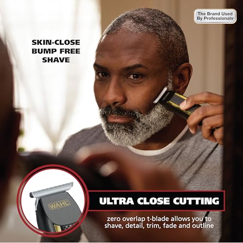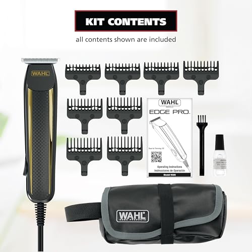 The Wahl Edge Pro corded mens hair trimmer, and detailer is a full power beard trimmer for men. This trimmer kit includes a detail trimmer for intricate designs or personal trimming. Our T-Blade facial hair trimmer allows for easy trimming, grooming, and touch-ups while staying sharper longer. Get crisp clean lines & sharp edges with Wahl’s zero overlap precision ground T-blades. The blades are 0.2 mm and provide a super close trim/shave leaving a crisp line for excellent definition without causing razor bumps. The high-torque rotary motor provides the power of a full-size clipper in an easy to hold compact corded trimmer for use in US outlets only. Featuring 8 guide combs for haircuts and trims, the included attachment combs range from short (1/16”) to long (1/2”). The high-quality hair trimmer for men provides smooth hair clipping, beard trimming, beard & neckline detailing, and total body grooming. Conveniently store all included accessories and beard trimmer in the included storage bag. The Brand Used by Professionals – Wahls clippers and trimmers have been used by professionals in the salon & barber industry since 1919. With self-sharpening precision blades Wahl clippers, shavers & trimmers deliver a smooth shave. Note: Product in packaging may not be the same as photo due to continuous improvements to the product. We test the Wahl beard trimmer for men for cutting performance prior to packaging with a hygienic fiber. We do our best to clean the men’s beard trimmer kit to remove any testing particles, but it is possible a few may remain. They are not hair and can be simply wiped off. For best results, use Wahl Clipper Oil on the blades when necessary, or approximately once a month.