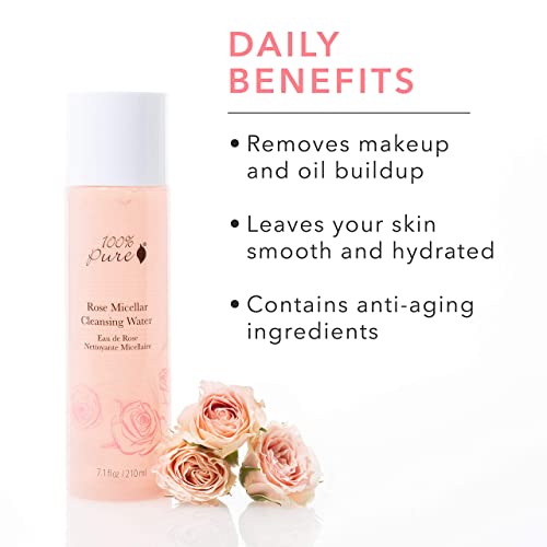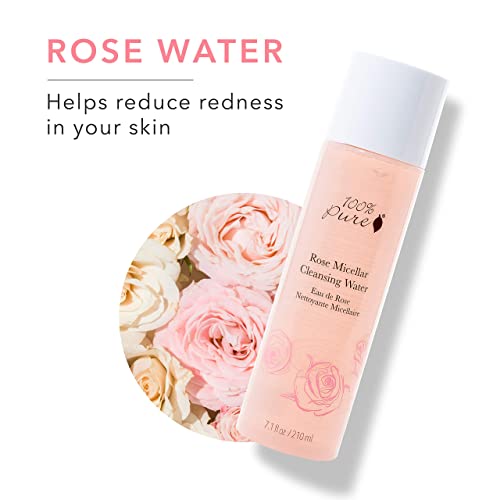 100% PURE Rose Micellar Cleansing Water, Hydrating Makeup Remover, Daily Skin Care for All Skin Types, Soothing Micellar Water, Natural Skin Care – 7.1 Fl Oz