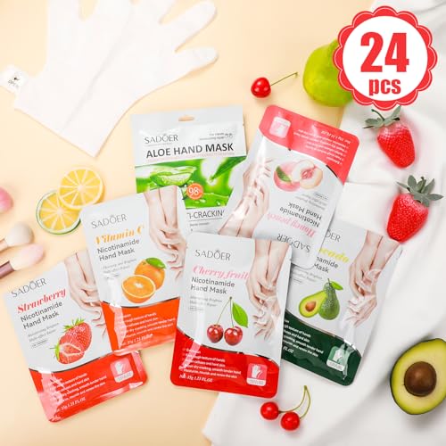 24 Pcs Fruits Beauty Hand Mask Bulk Hydrating Hand Moisturizing Gloves Treatment Mask for Spa Kit Sleeping Skincare Gift Beauty Kits for Women