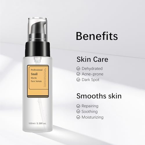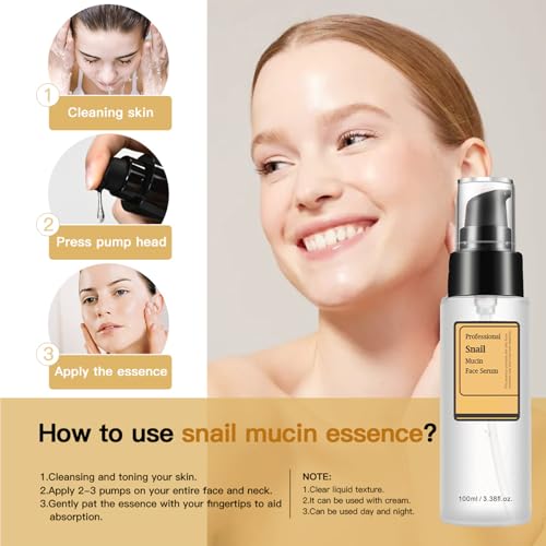 Snail Mucin Serum, Snail Secretion Filtrate, Snail Mucin Power Repairing Essence, Hydrating Serum with Snail Secretion Filtrate Sodium Hyaluronate for All Skin