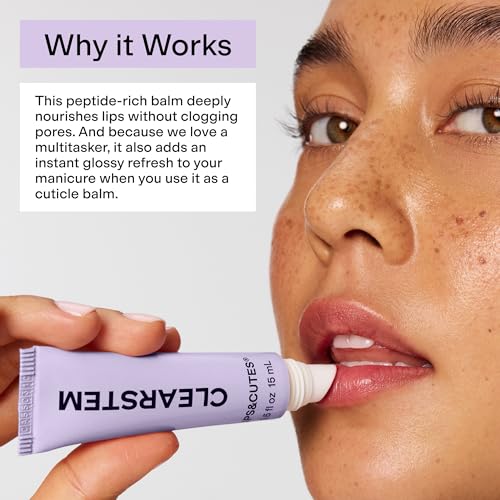 CLEARSTEM LIPS&CUTES Lip Balm & Cuticle Care – Multi-Tasking Hydrating Balm with Peptides, Vitamin E & Green Tea – Lip Care Products & Cuticle Balm Essentials for Daily Soothing & Nourishing Routine