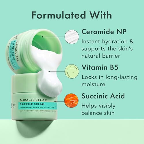 Rael Face Moisturizer, Miracle Clear Barrier Cream – Lightweight Moisturizer with Succinic Acid and Vitamin B5, Hydration, Korean Skin Care (1.8 oz)