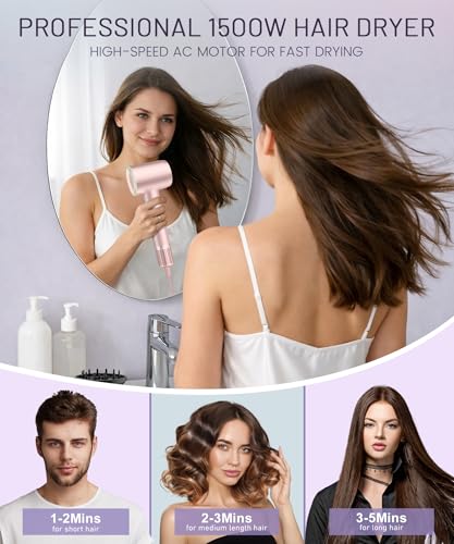 Cosy Companions High-Speed Ionic Hair Dryer, 150000 RPM Brushless Motor for 2-5 Min Fast Drying, Low Noise Blow Dryer Reduces Frizz & Heat Damage, Lightweight Hair Dryer with Diffuser & Nozzle, Pink