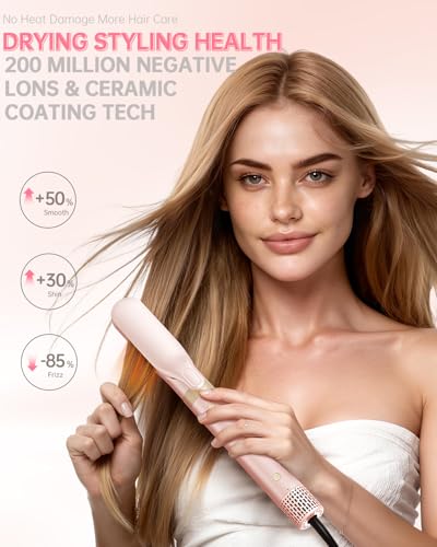 Hair Dryer Brush 8-in-1 Dual Voltage Hot Air Styler – Fast-Drying 110,000 RPM Ionic Blow Dryer with Straightener & Curler Attachments, Frizz-Free Volumizing Styler with Protective Hard Case-Pink