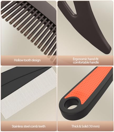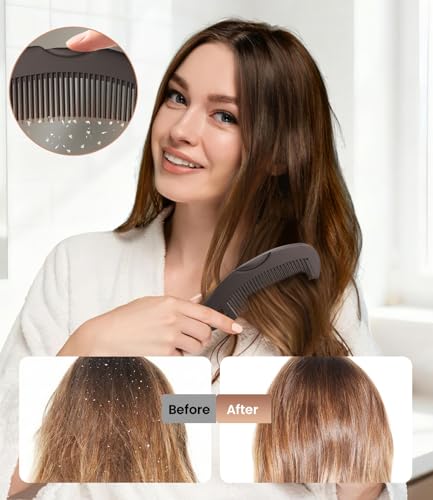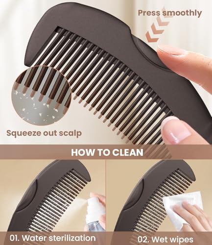 Dandruff Comb Fine Tooth Scalp Detox Comb Lice for Women, Men & Kids Stainless Steel Scalp Detoxing, Sweep & Massage Hair Brush Tool for Hair Care (Brown+Red)