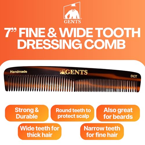 GENTS 7 Inch Tortoise Hair Combs Pack of 3 – All Purpose Dressing, Styling & Detangling Combs for Barbers, Stylists & Everyday Hair Care