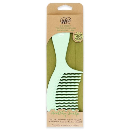 Wet Brush Go Green Tea Tree Oil Infused Treatment Comb – Wide Tooth Hair Detangler with WaveTooth Design that Gently and Glides Through Tangles – No Split Ends and No Damage