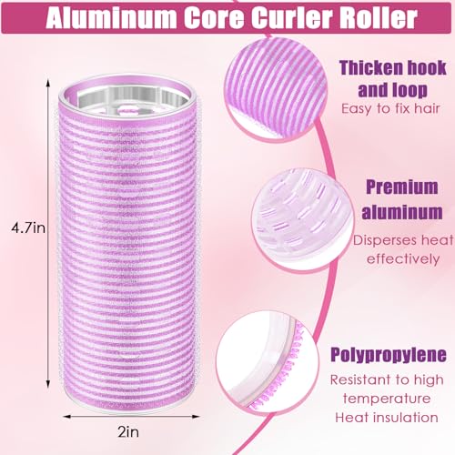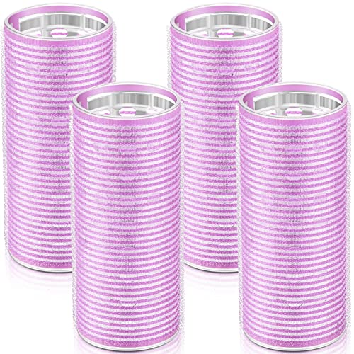WILLBOND 4 Pcs Long Hair Rollers for Bangs Aluminum Core Curlers Thermal Self Grip Roller for Long and Medium Hair Women Hairstyle(4.7 x 2 Inch,Purple)