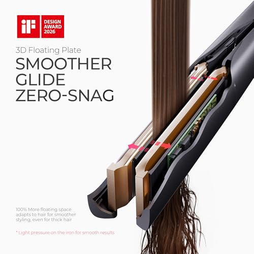 TYMO 2.0 Flat Iron Hair Straightener for Women – 1” Long Ceramic Professional 2 in 1 Straightener and Curler for Fast, Smooth Styling, Innovative Hollow Design to Boost Curls, 500M Ionic, Black