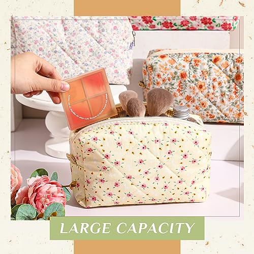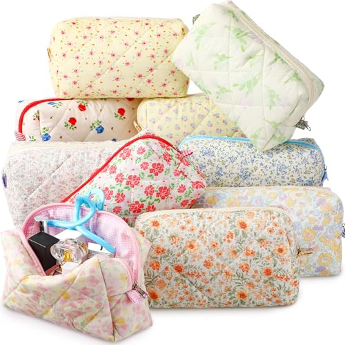 Paterr 10 Pcs Quilted Makeup Bag Bulk Cotton Floral Cosmetic Bag Women Girls Bridesmaid Gifts Cute Makeup Pouch Coquette Aesthetic Travel Toiletry Organizer(Classic Style,7.87 x 4.72 x 3.15 Inches)