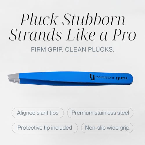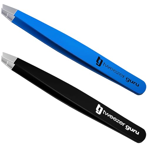 TWEEZER GURU 2 piece – Slant Pointed Precision Tweezers for Eyebrows, Ingrown Hairs, Blackheads – Sharp Needle Nose for Plucking, Splinters