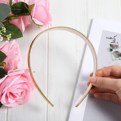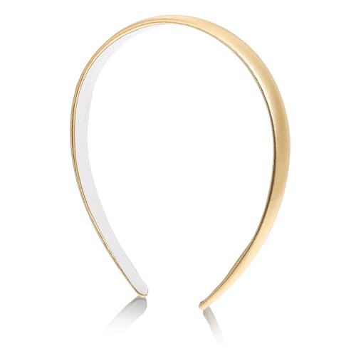 Specification: Gold Headband for Women and Girls, 0.5 Inch Satin Hard Headband Cute Golden Hairband Fashion Faux Leather Hair Accessories